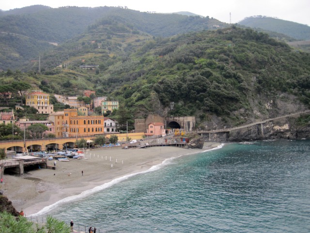 After a long train ride with a transfer in Milan, we arrived in Monterosso. It felt so good to be away from the busyness of the last 3 cities. The sea was a welcome sight, and even though it was a little cold, I loved arriving here. We started to feel relaxed. The “hotel” was really just a room rented from a young family. We found the place and knocked on the door until a young French girl answered and took us downstairs to a note on the door as to where we should contact our hostess. She was very apologetic that she didn’t speak any English, so at last I could use the French I was dreaming of earlier. I managed a Merci and she seemed impressed.