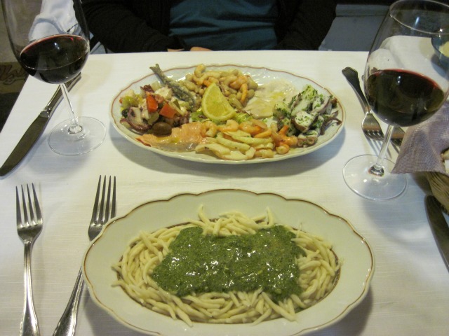 We waundered around and really fell in love with Monterosso. It is a quaint town with a relaxed pace. We ate dinner at a restaurant around the corner from our room, and had seriously the best dinner of my life. The pesto and antipasti, along with where we were, just made this dinner what it was. Fresh fish and homemade pasta, you just can’t go wrong.