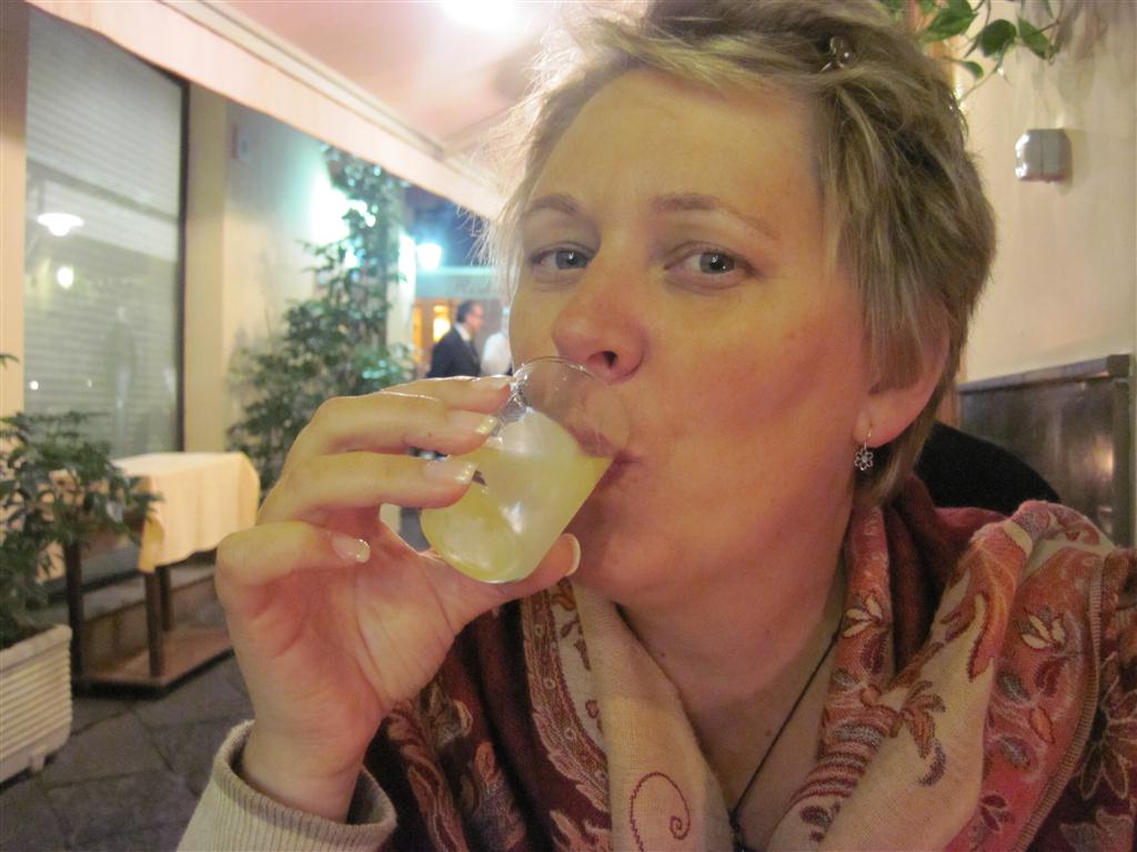 The salad bar was amazing with everything from octopus to broccoli. When our dinner was served, 3 men came out to help with the presentation, cleaning, and serving of our fish. It was just before this that we realized we hadn’t asked the price of the dish. Uh oh….all this pomp and circumstance was making us nervous. After dinner, Rick had a cappucino and they brought us a little plate of desserts…and then followed up with a shot of limoncello.