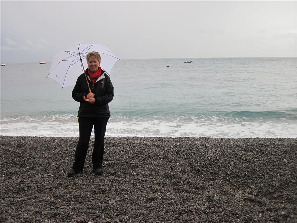 Thankfully it is cold when we get to Amalfi, and it spits a bit of rain…so we head back to Positano, where I can sit on my beach chair, wrapped in a wool blanket, and drink Prosecco.