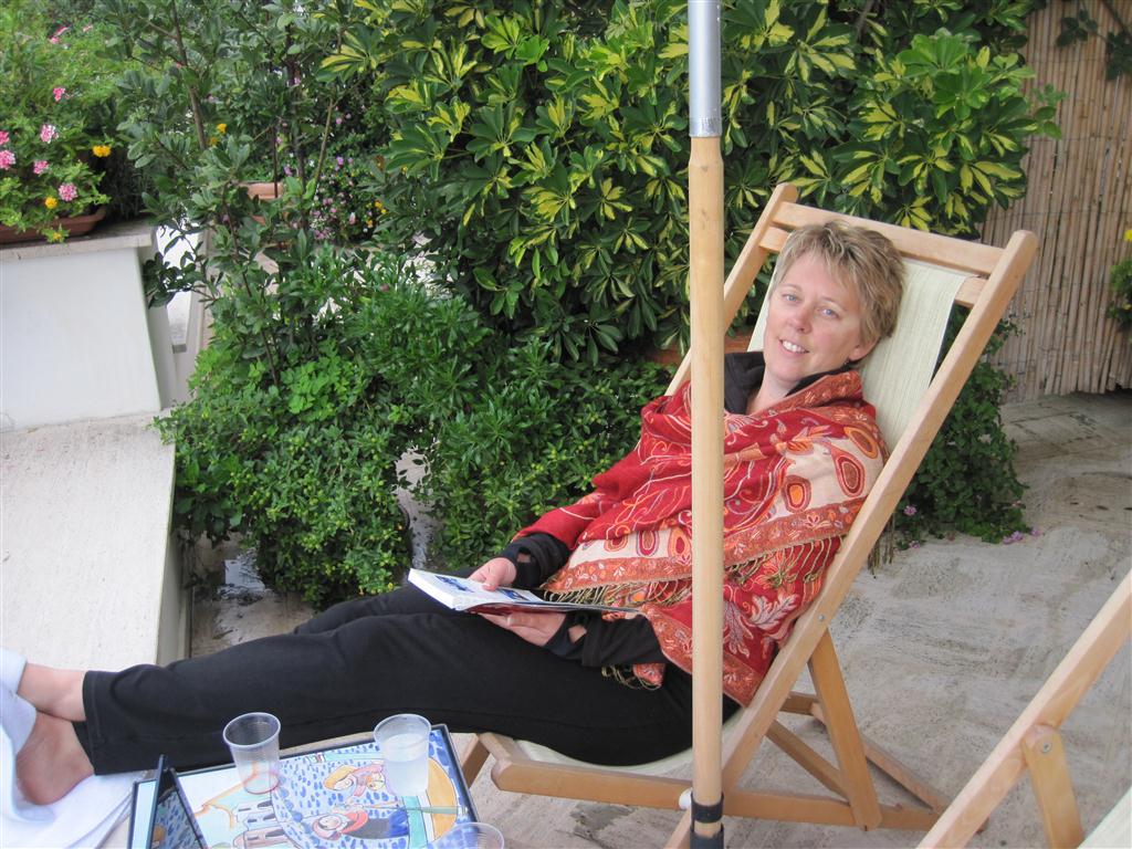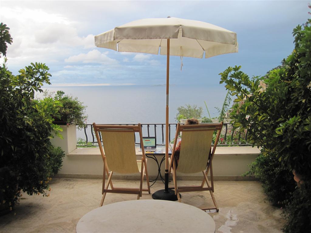 The whole point of Positano was to relax at the end of our trip, and we are. Well at least that was my plan. This morning we had a late and lazy breakfast on our terrace, and I was comfortably sitting on my beach chair…sun shining….tea next to me….everything right with the world. Then, Rick asked what I would like to do today…apparently it wasn’t obvious that I had taken up residence right here on the terrace. We started discussing where we thought the restaurant we had dinner at last night was located, and Rick passed me tiny(our laptop), and asked if I thought this was where….conveniently located on a scooter rental page. So much for my peace.
