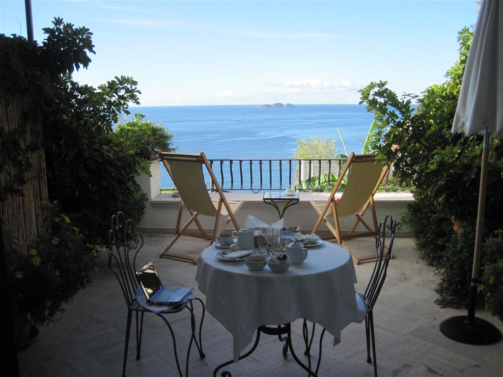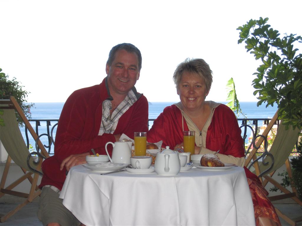 Our breakfast on our terrace at Villa Rosa.
