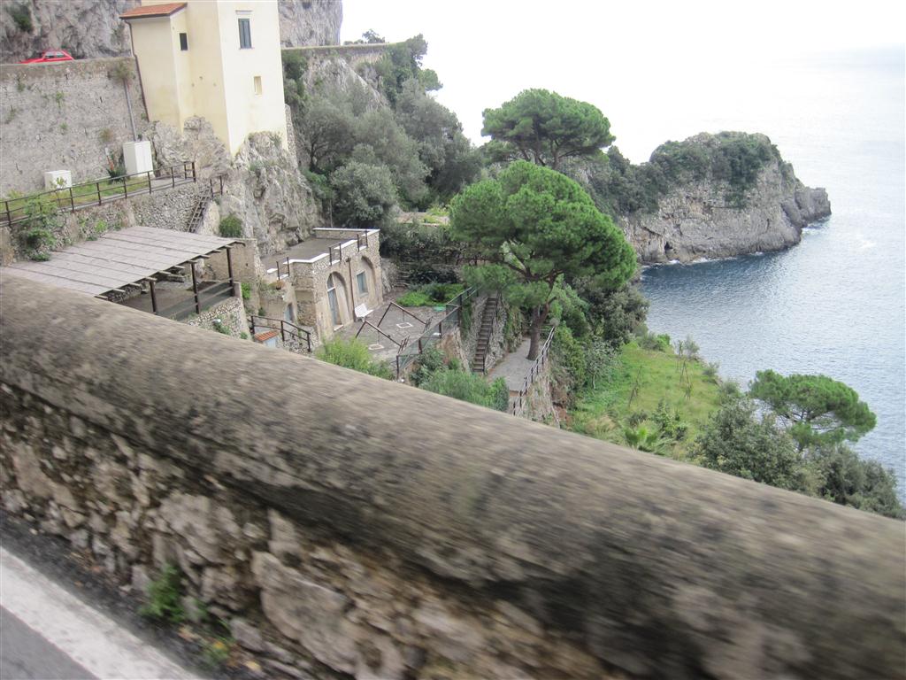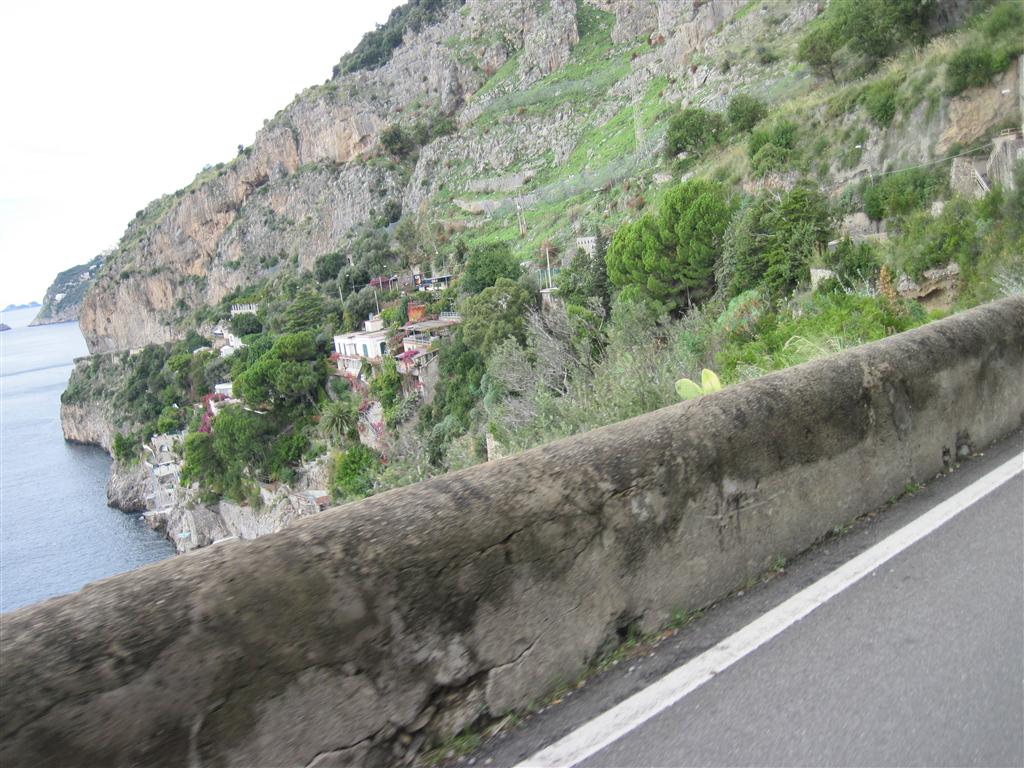 The drive out of Positano is fine…buildings on either side and a one way street. No problemo. It’s when we get out. Now Rick is just feeling the scooter out at this point, so the driving is slow, and the height is not that bad. Once he figures it out, I have a few scary kms.