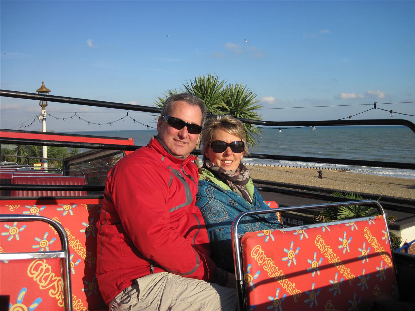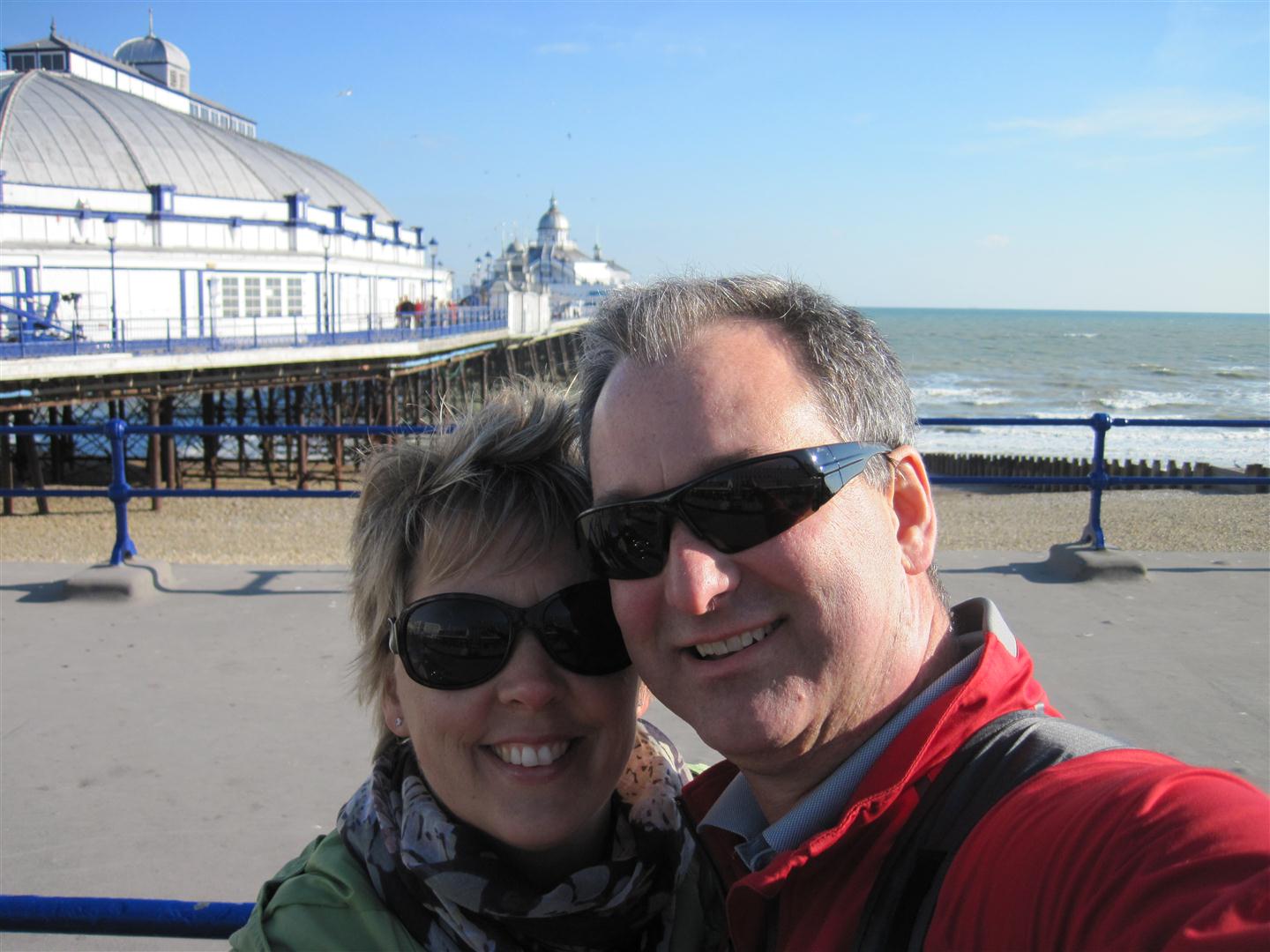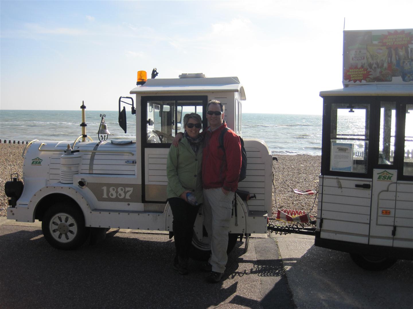 First stop, the Dotto train. We look for a train….not the case….it’s actually a vehicle disguised as a train. These are the rides that are for the very young and old. And we saw that it was filled today with the old. We stopped for tea at the end of the ride, and Rick and I were very much the youngest people there. Our enthusiastic Irish conductor later tells us that Eastbourne is nicknamed “God’s Waiting Room”. Not a suprising revelation!