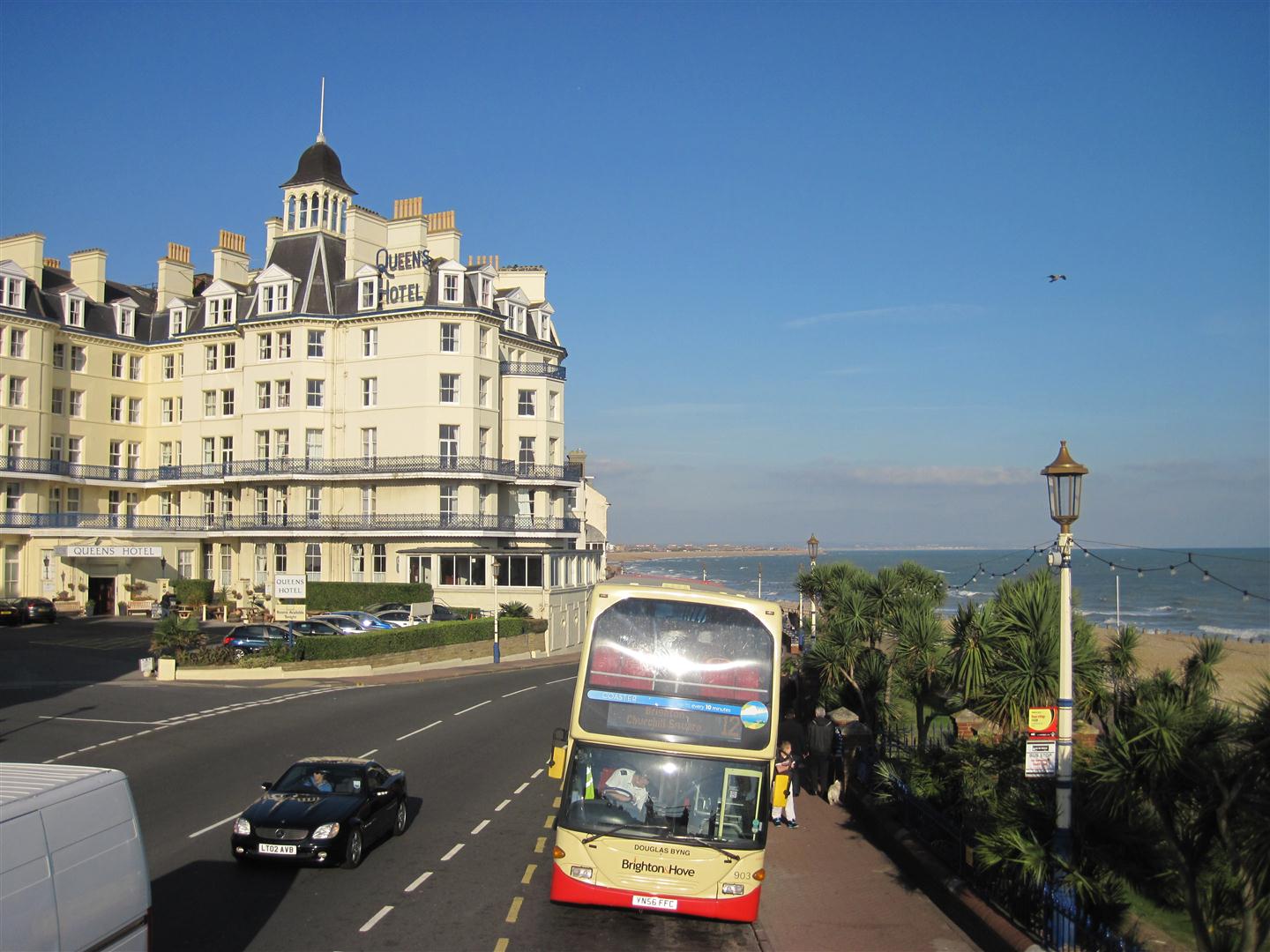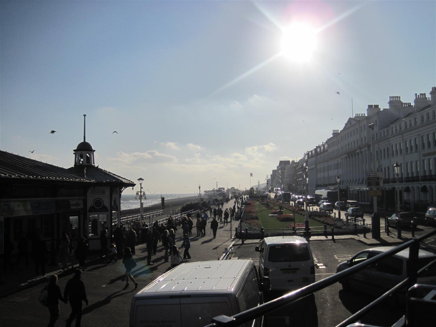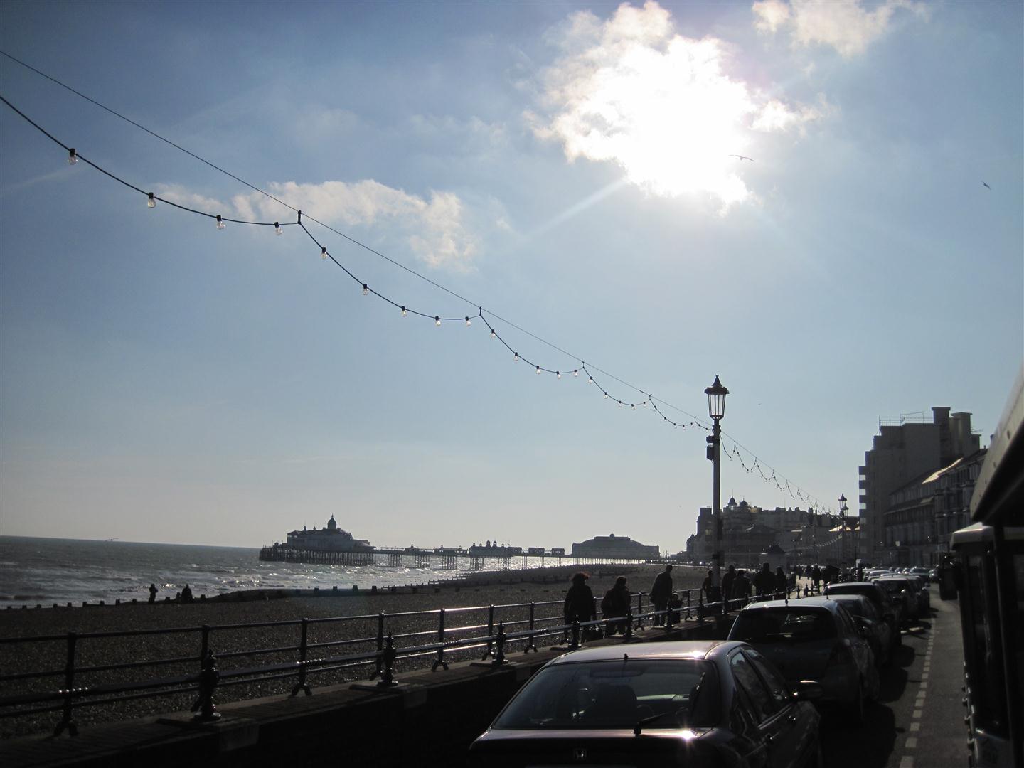 Sandwiches and drinks in hand we got on the next bus to…Gatwick airport….seriously, we were just there! A jump onto a packed train of commuters, and we were on our way to Eastbourne. We passed cozy towns/villages/or whatever quaint name the English have coined, but was exactly what I expected to see. We were on board with a lively Scot and Irishman. I just wanted to get off and follow them all home.