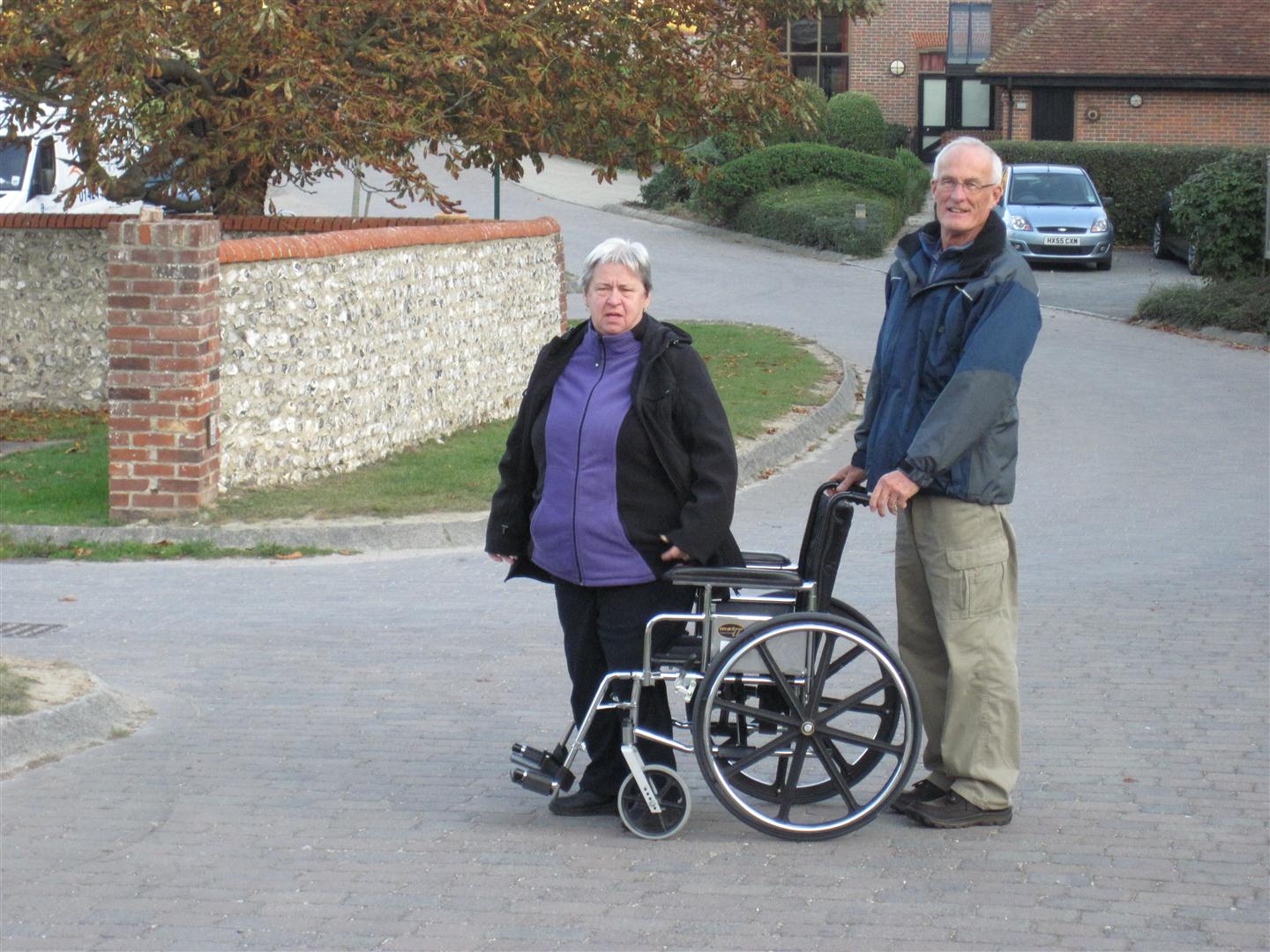 Of course we get out the door, and discover nobody has really understood (listened) to what she said, but we figured we could find it. Not so much the case. We wandered around and at one point decided to split up to go look. Rick and I come back around the corner to discuss our findings to discover what we thought was to be our first casualty. The wheelchair on its side, Gisele standing beside it, Brian on his knees and another couple leaning over it. The tire had come off, and luckily the guy who stopped to help used to be an avid bike rider and fixed the tire right up, and gave us directions to the pub.