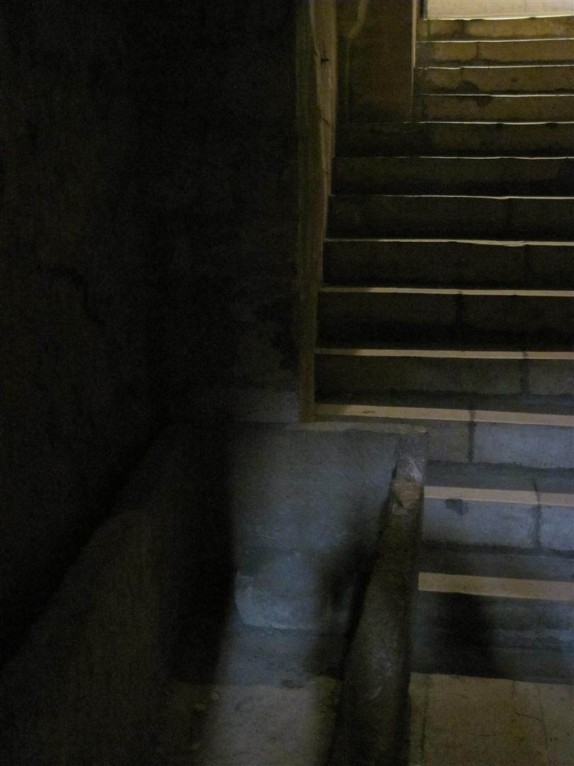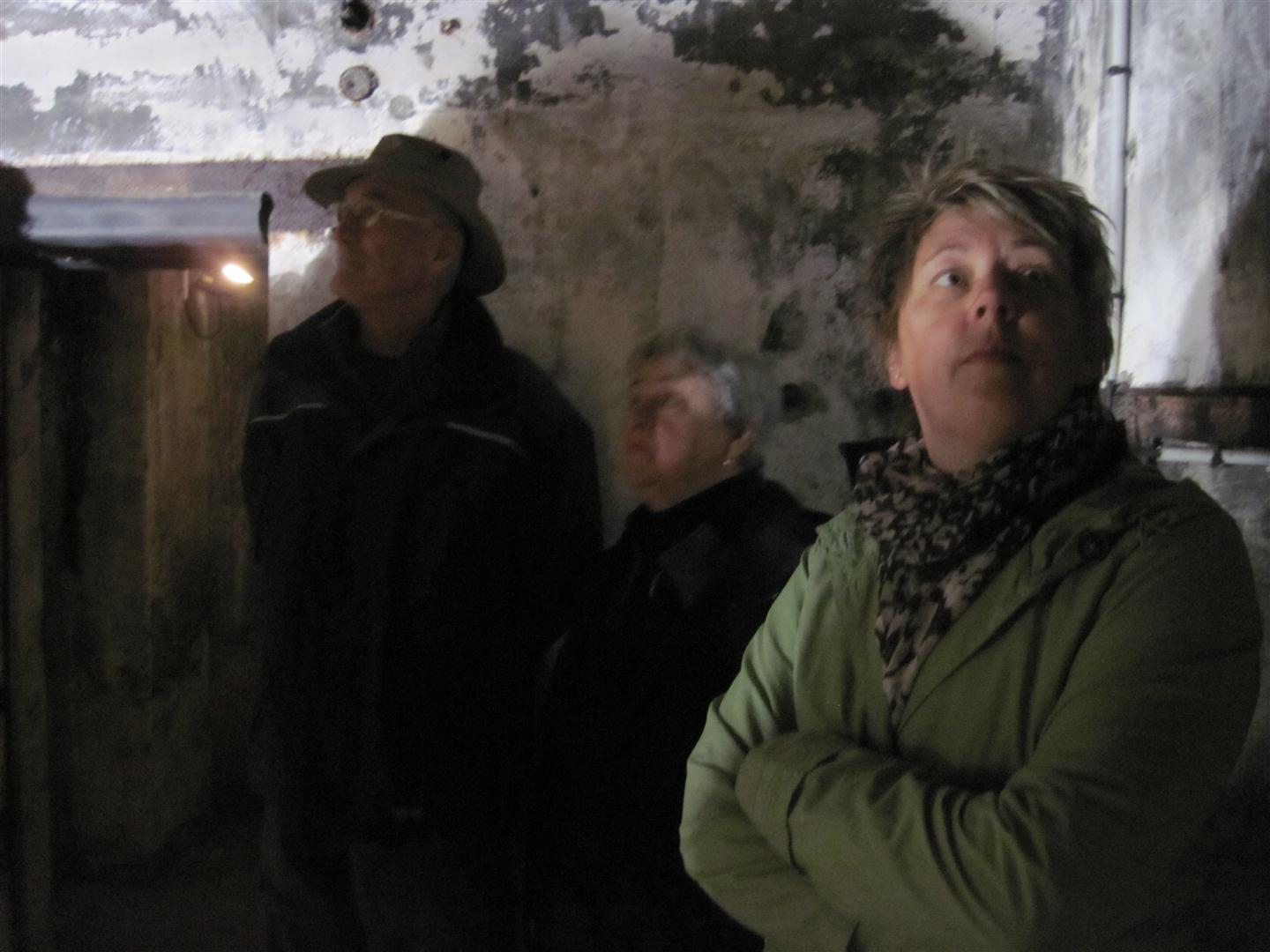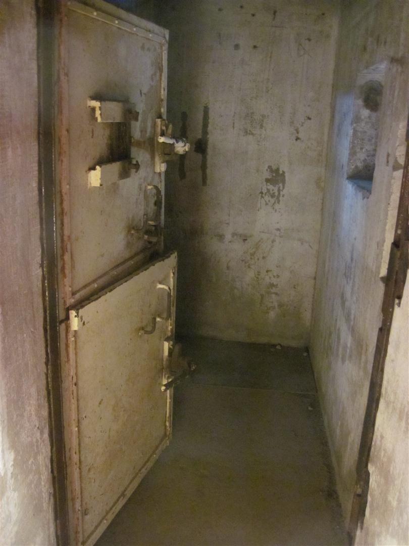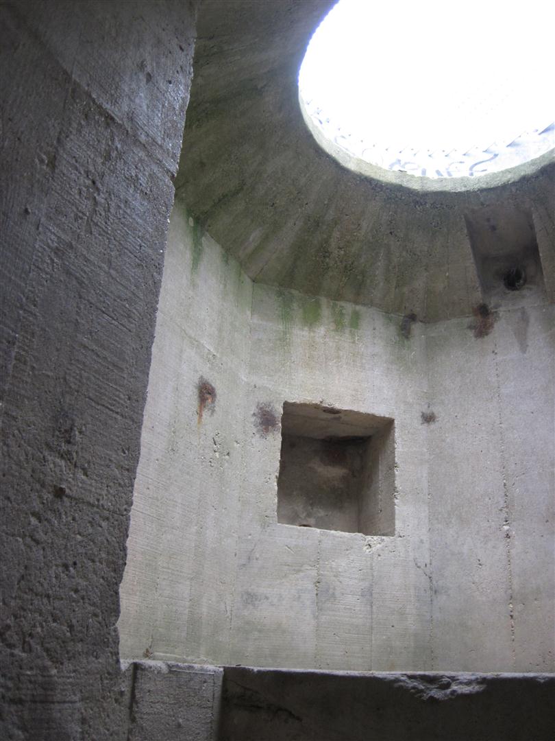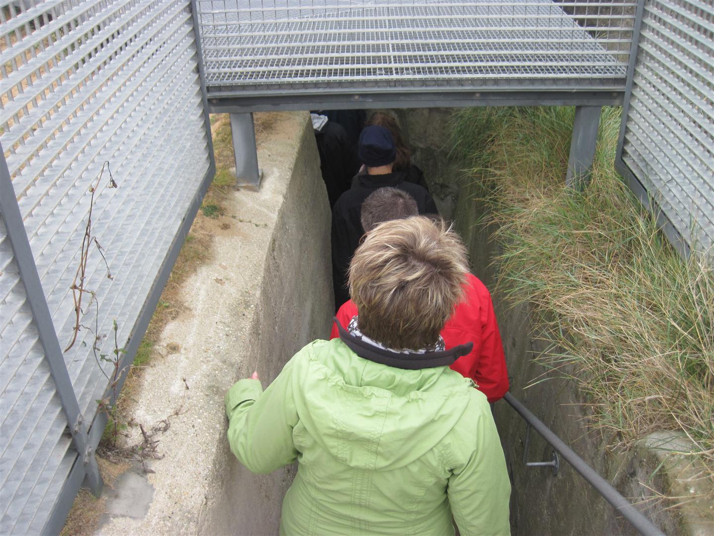 Heading down into the German bunker where they would watch the water for invasions.