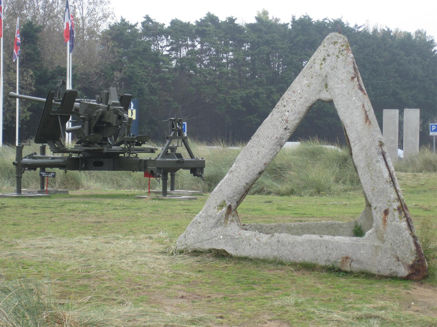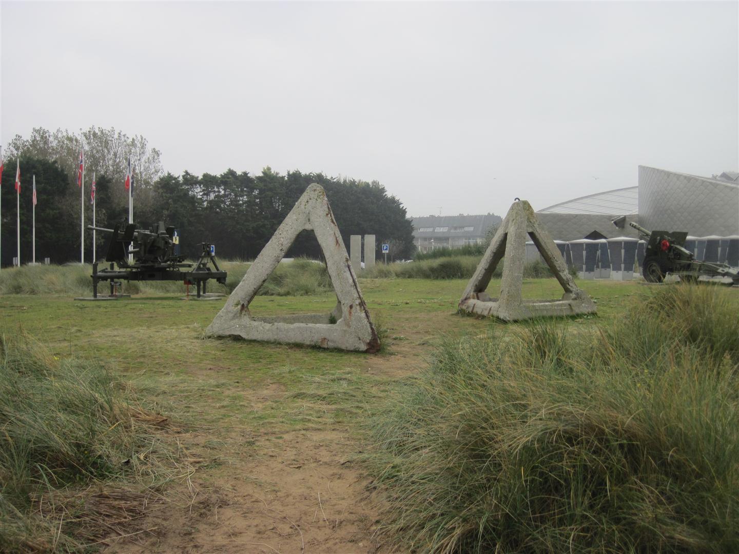 Barricades that were scattered on the beach and in the water to prevent boats landing and were designed so no man could hide behind it.