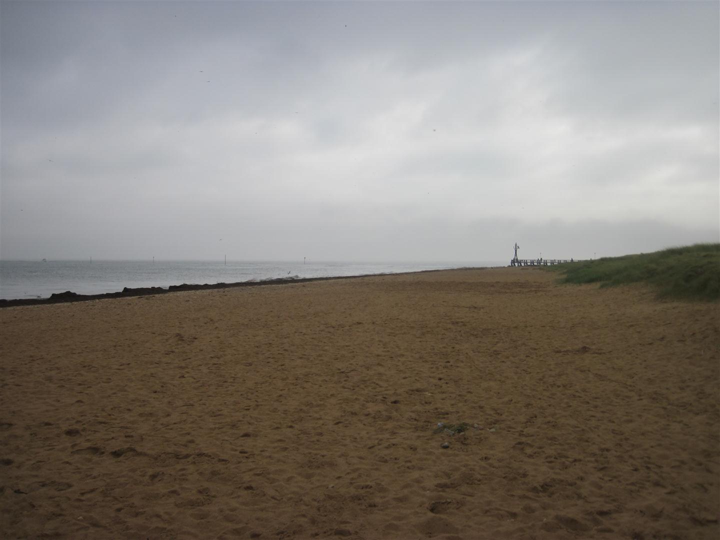 D-Day beach. The tide is in right now, but she showed where the tide was when they landed. It was quite a distance for them to travel to even reach the beach.