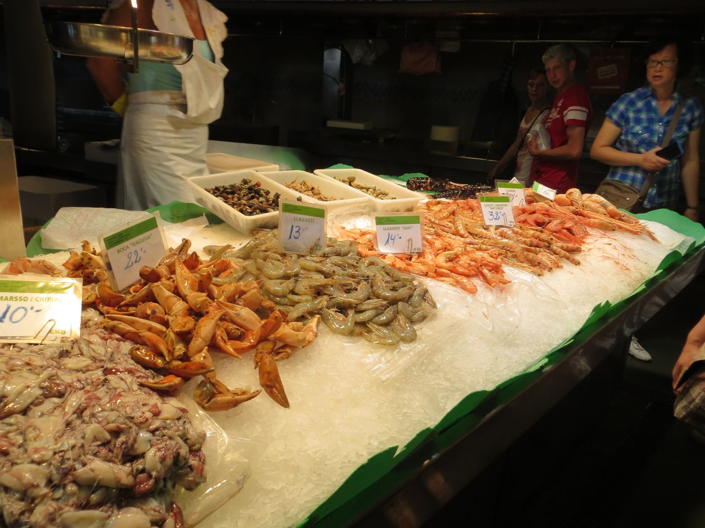 Array of seafood at La Boqueria