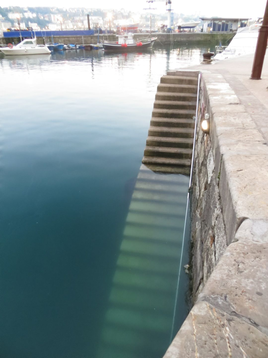 There are stairs like this all over, and they just lead into the water for swimming.
