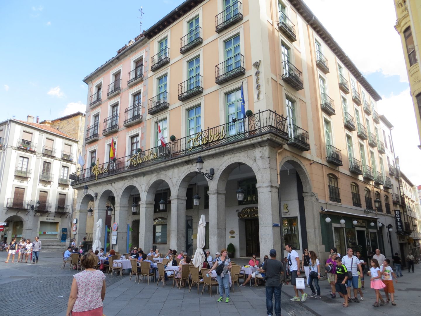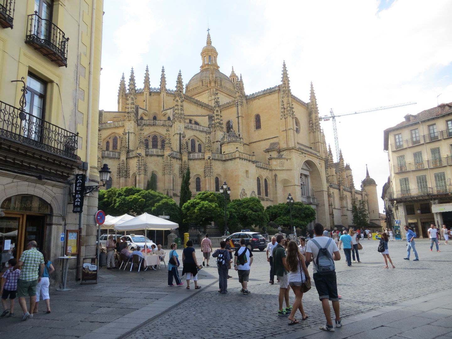 On our way down to Sevilla, we decided to cut the driving down to 2 days and have stopover along the way. We had so many different itineraries for getting around Spain, that most of the time we don’t remember where we are staying and why. Tonight was one of those nights. The GPS led us around the city and not into it, I was pretty scared we were going to be at our equivalent Super 8 hotel. However, my trusty tour companion, pulled it off again and our hotel was right in the middle of a square with a massive church on one side of it, framed by cafes with outside seating.