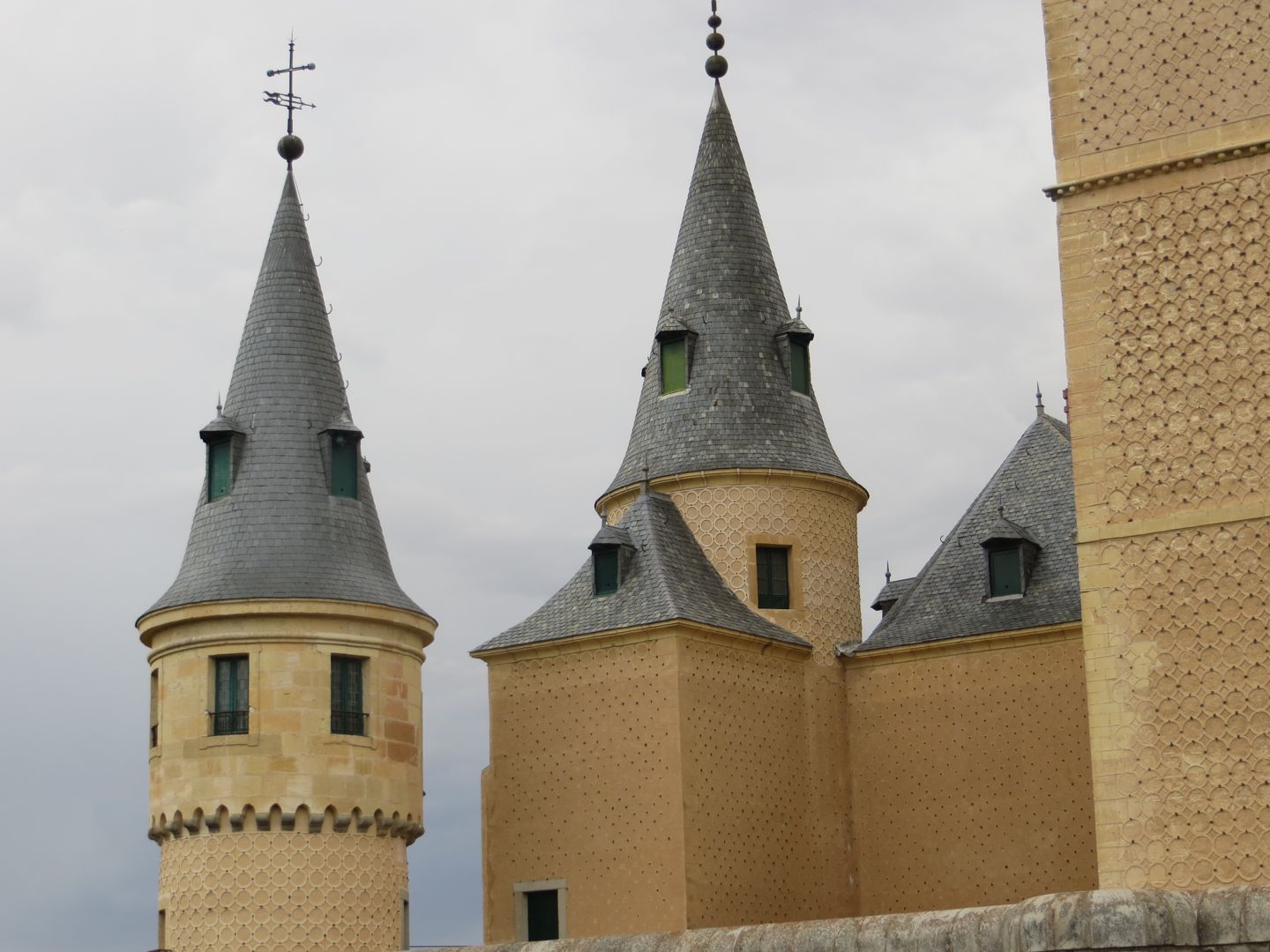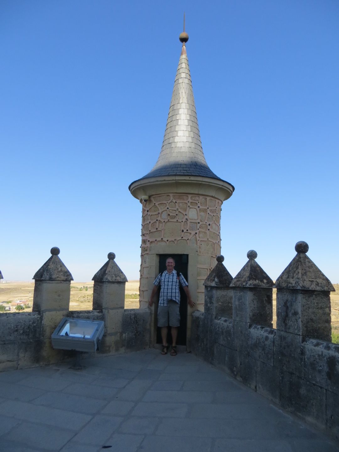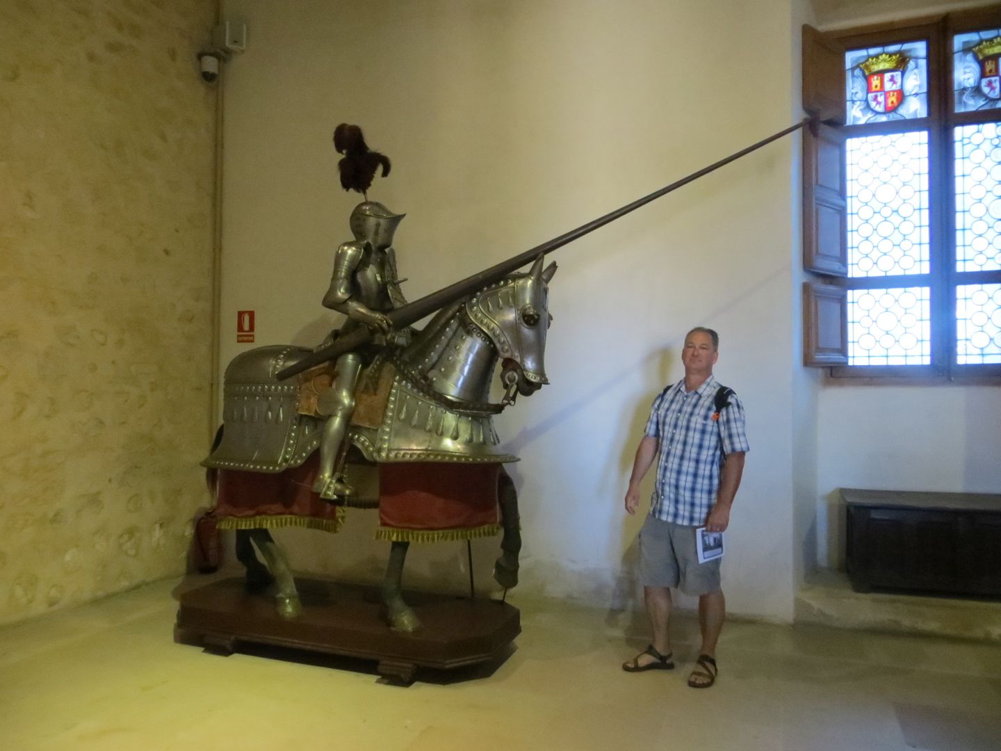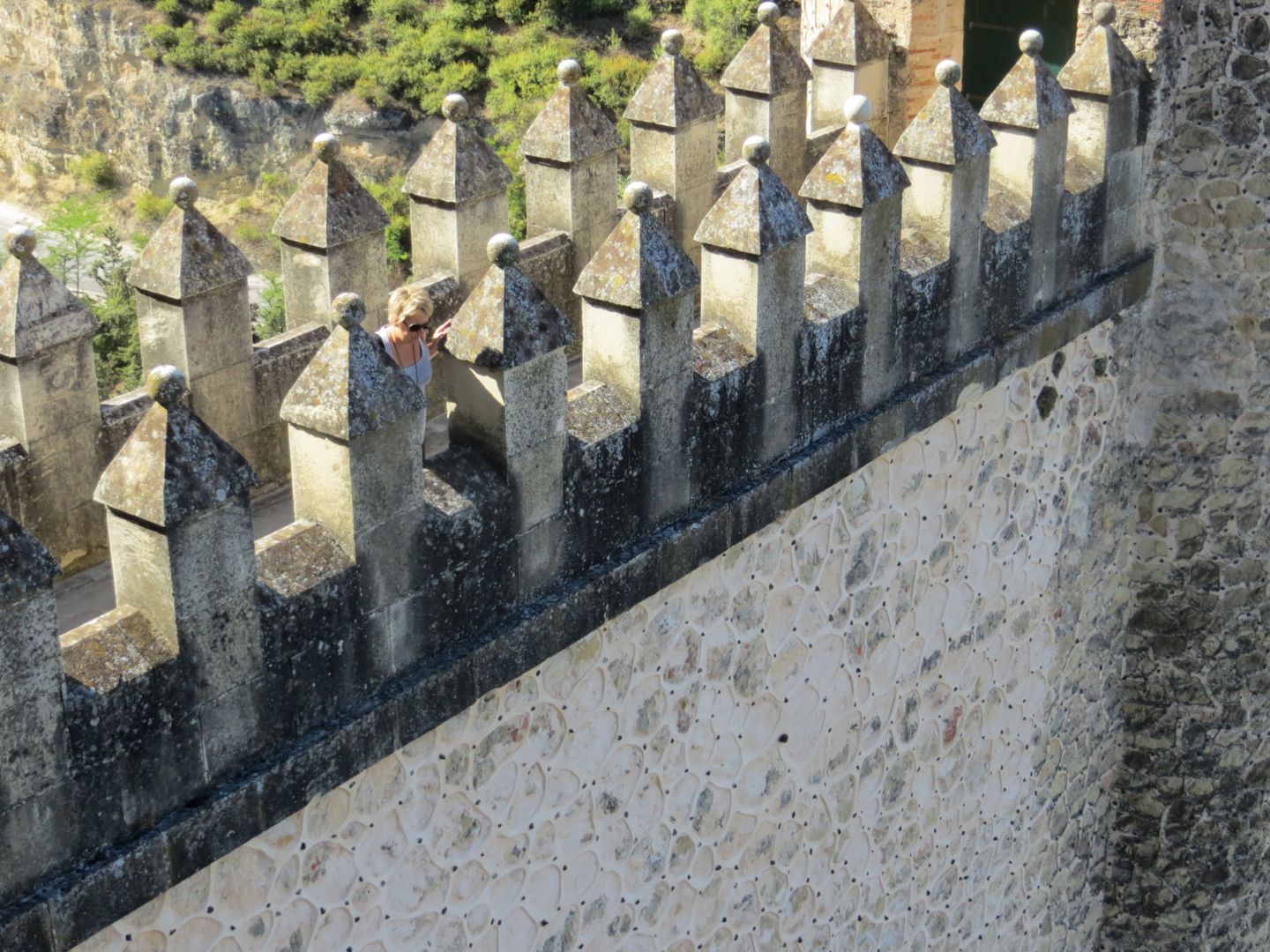 The day we left, we knew we had a long driving day ahead of us, almost 6 hours, but we couldn’t resist touring the Alcazar (palace) of Segovia, and it didn’t disappoint. The palace had a moat on one side, and a fortress wall on the other. We walked through the palace, which now displayed armour, weapons, tapestries, and furniture. A building/house is classified as a palace by the room placement. When you walk in the front door, you enter a long room, in this case it was called the room of the old palace, sided by a fireplace room, and the royal chamber on the other. Other rooms in this palace included, the queen’s dressing room, chapel, parade courtyard etc. Interesting was how high up the fortress wall was, scarily high. Definitely one of our best stops so far. On to Sevilla, yet another place we can’t remember where we are staying!