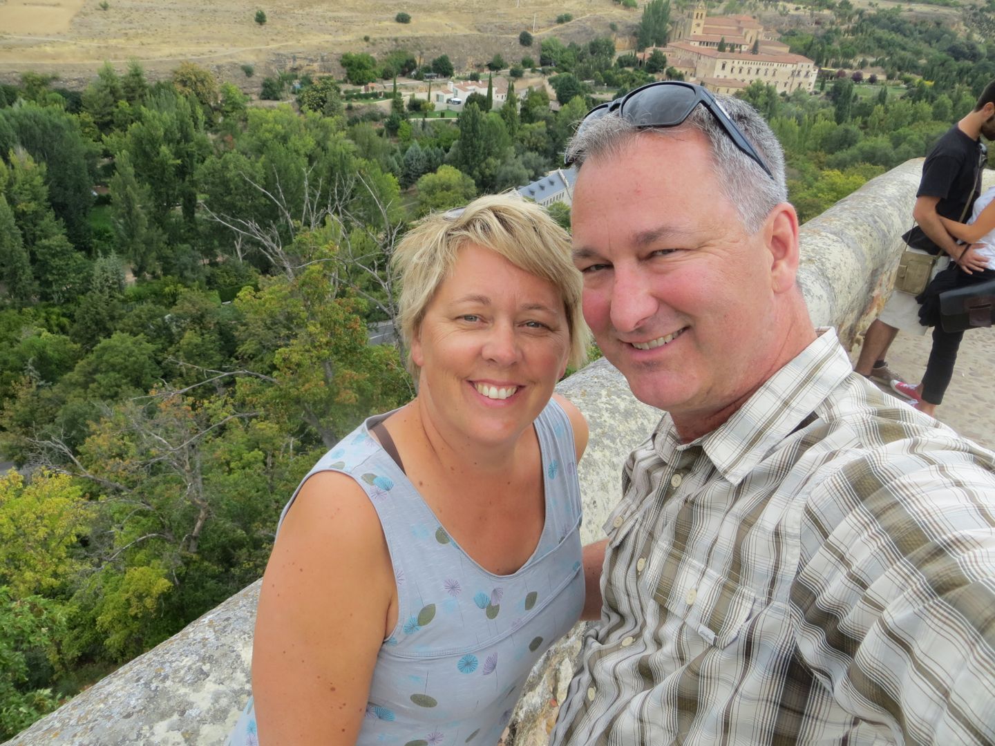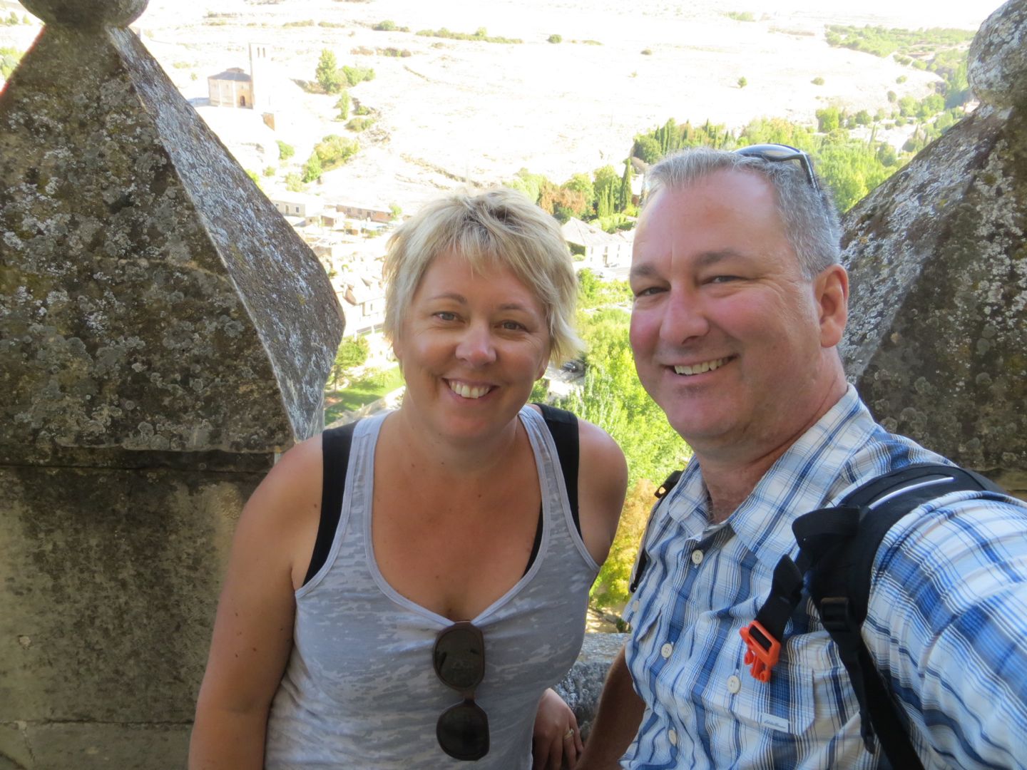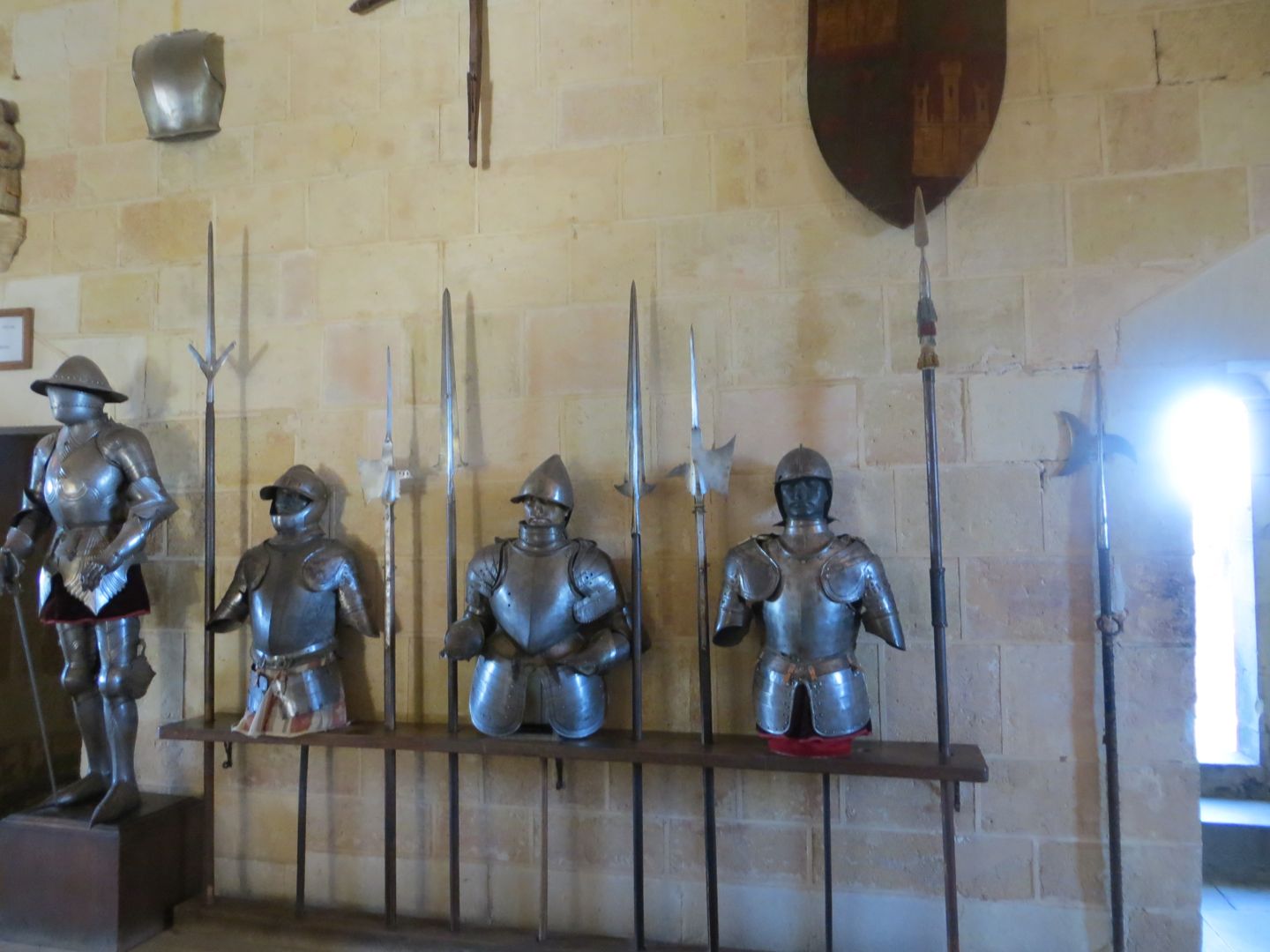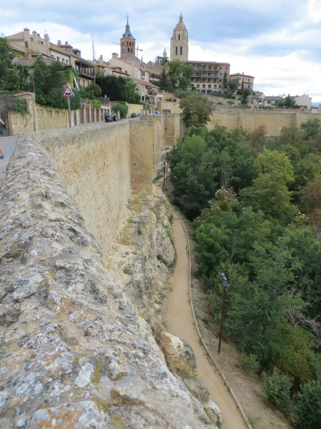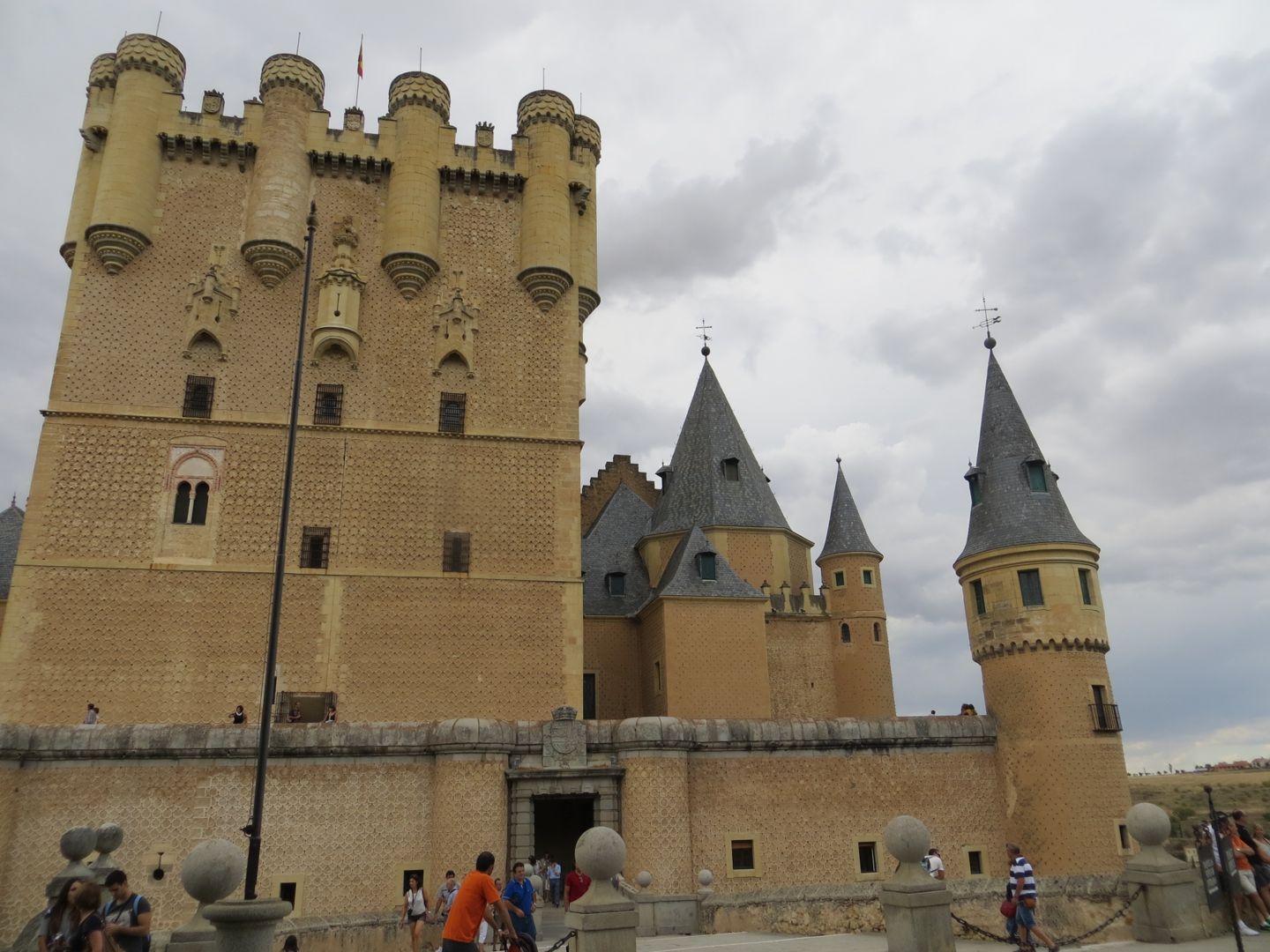 The day we left, we knew we had a long driving day ahead of us, almost 6 hours, but we couldn’t resist touring the Alcazar (palace) of Segovia, and it didn’t disappoint. The palace had a moat on one side, and a fortress wall on the other. We walked through the palace, which now displayed armour, weapons, tapestries, and furniture. A building/house is classified as a palace by the room placement. When you walk in the front door, you enter a long room, in this case it was called the room of the old palace, sided by a fireplace room, and the royal chamber on the other. Other rooms in this palace included, the queen’s dressing room, chapel, parade courtyard etc. Interesting was how high up the fortress wall was, scarily high. Definitely one of our best stops so far. On to Sevilla, yet another place we can’t remember where we are staying!