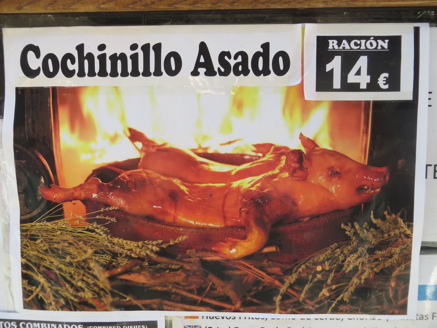 Based on our belief to try what the local specialty is, within reason, dinner was another adventure. The area is know for it’s specialty, which is cochinillo, sounds bearable, suckling pig. I can barely write without imagining the horror of the scene where this little piglet is being taken from it’s mother, brother and sisters, only to end up on my dinner plate. The description on the menu is “roasted piglet in our oven”, yikes. Sad for the little pig, fantastico for us. Rick got a shoulder, and I got the ribs, which are reminders of the size of animal you are eating. Rick’s had a tiny hoof still attached, and mine had the tiny ribs. Delicious, but I won’t have it again, too much guilt and drama in my head to manage another.